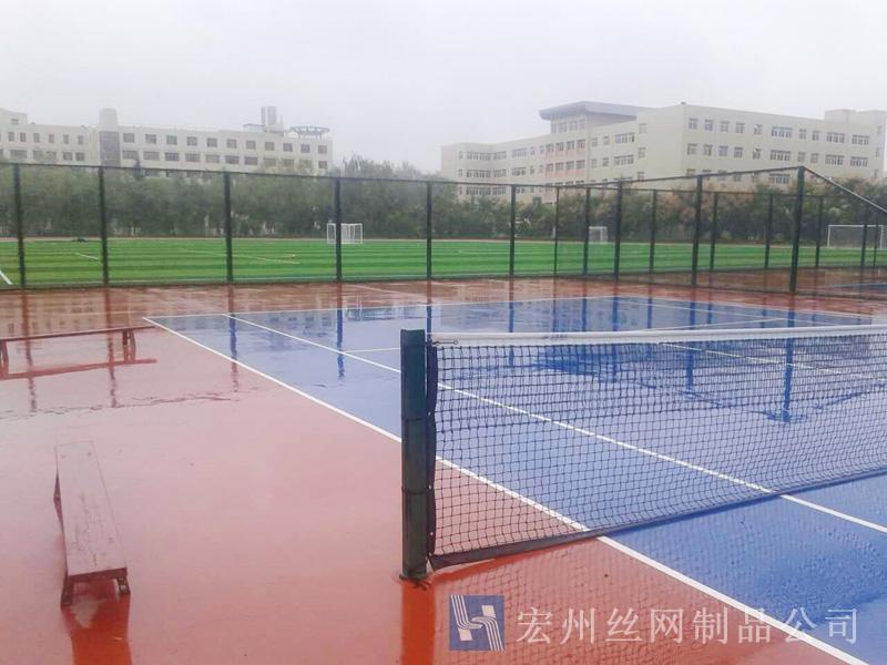 【田徑場圍網】是選用優質低碳鋼絲編織焊接而成。采用防盜螺栓卡接、扁鐵固定、組裝掛鉤方式連接。經過電鍍、熱鍍、噴塑、浸塑處理,具有防腐、防老化、抗曬、耐候、色彩鮮亮、網面平整,強力張緊,不易受外力撞擊變形、現場施工安裝、靈活性強(可根據現場要求隨時調整造型和尺寸)等優勢。