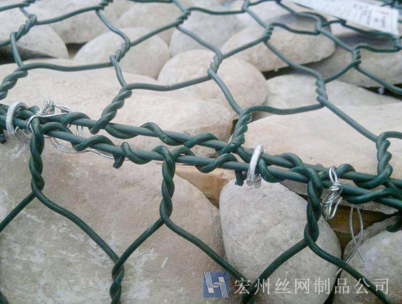 (3)鍍鋅鋼絲包塑:優(yōu)質(zhì)低碳鋼絲,在鋼絲的表面包一層PVC保護(hù)層,再編織成各種規(guī)格的六角網(wǎng)。這層PVC保護(hù)層將會(huì)大大增加在高污染環(huán)境中的保護(hù),并且通過不同顏色的選擇,使其能和周圍環(huán)境融合。