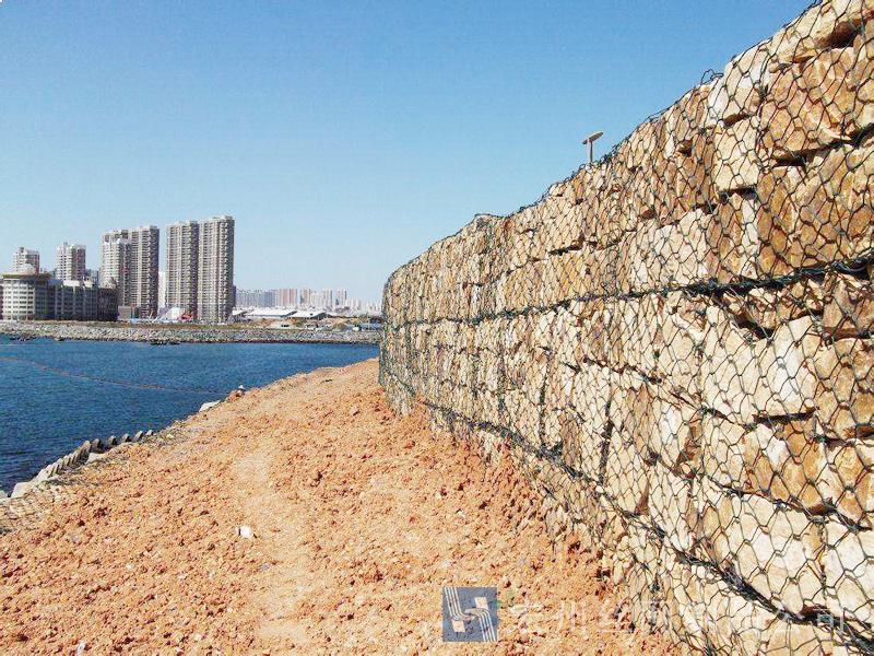 (4)可以承受大范圍的變形,而仍不坍塌。 (5)籠子石頭縫隙間的淤泥有利于植物生產(chǎn),可與周圍自然環(huán)境熔為一體。