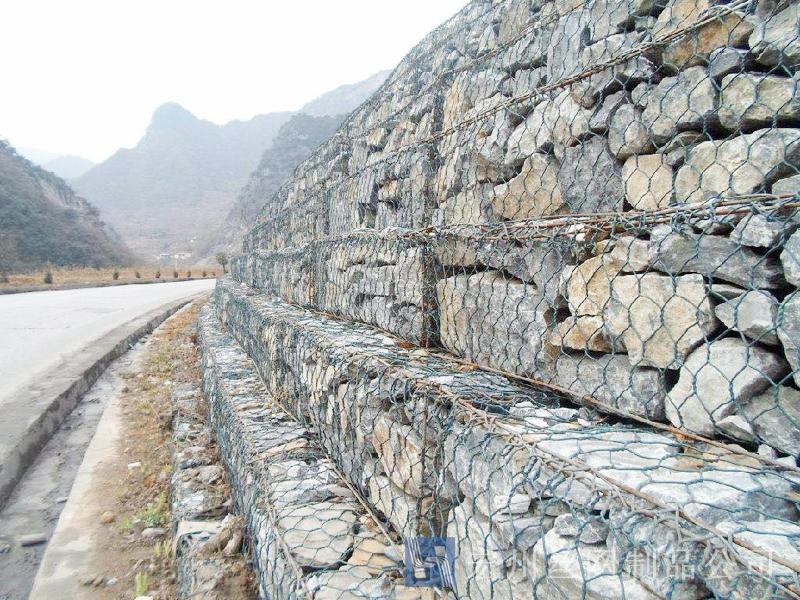 公路加筋網由網孔規(guī)格8 X 10cm 的雙絞合金屬網制成,材料全部采用熱鍍鋅防腐表面處理,一根橫向加筋棒以16厘米為間距穿入擰花鋼絲中間。具有高網帶抗拉強度,高網帶屈服伸長率。