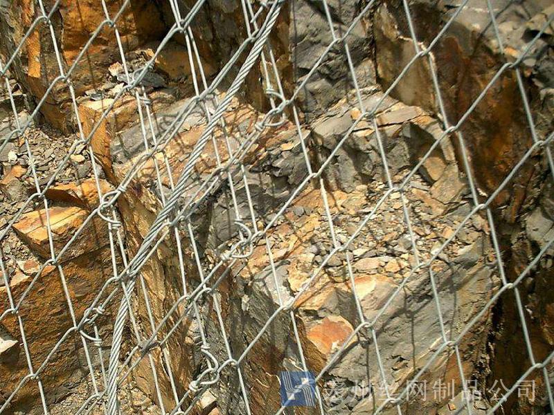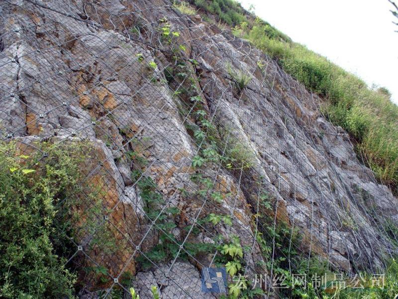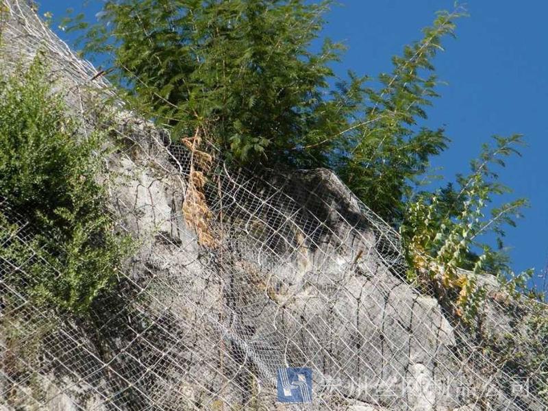 主動(dòng)防護(hù)系統(tǒng)是以鋼絲繩網(wǎng)為主的各類柔性網(wǎng)覆蓋包裹在所需防護(hù)斜坡或巖石上,以限制坡面巖石土體的風(fēng)化剝落或破壞以及為巖崩塌(加固作用),或?qū)⒙涫刂朴谝欢ǚ秶鷥?nèi)運(yùn)動(dòng)(圍護(hù)作用)。是柔性防護(hù)網(wǎng)的一種。